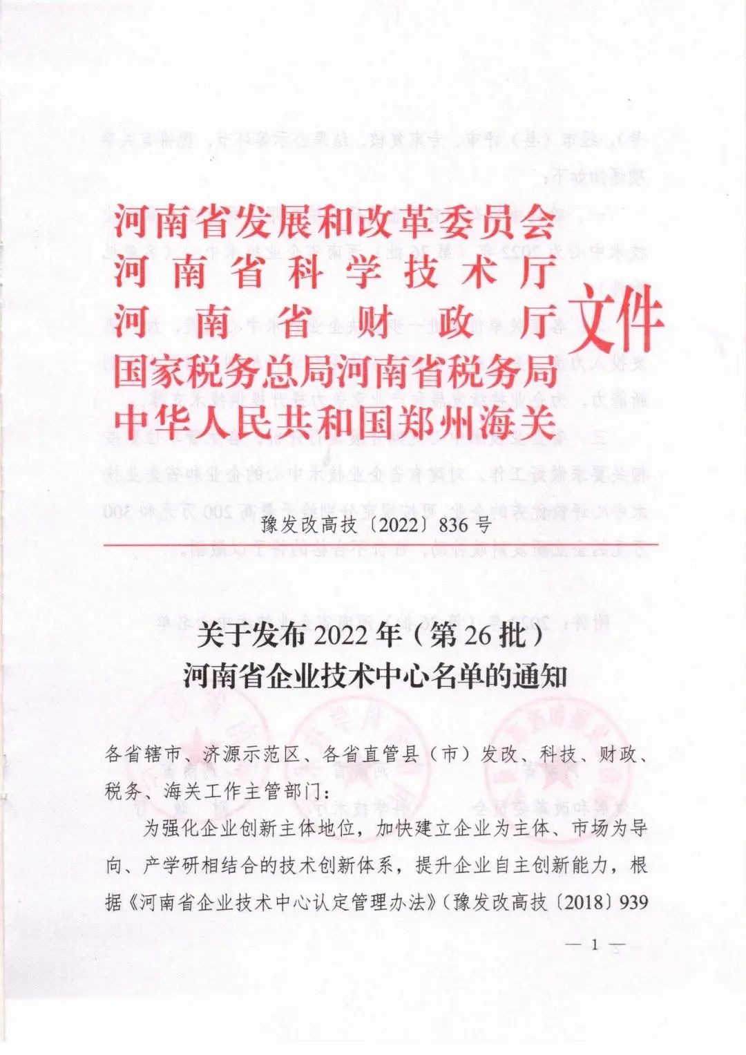 近日,河南省發(fā)改委、科技廳等五個(gè)權(quán)威部門(mén)聯(lián)合發(fā)文,公司企業(yè)技術(shù)中心獲批為 河南省企業(yè)技術(shù)中心,是繼2021年度獲批信陽(yáng)市施工技術(shù)工程
